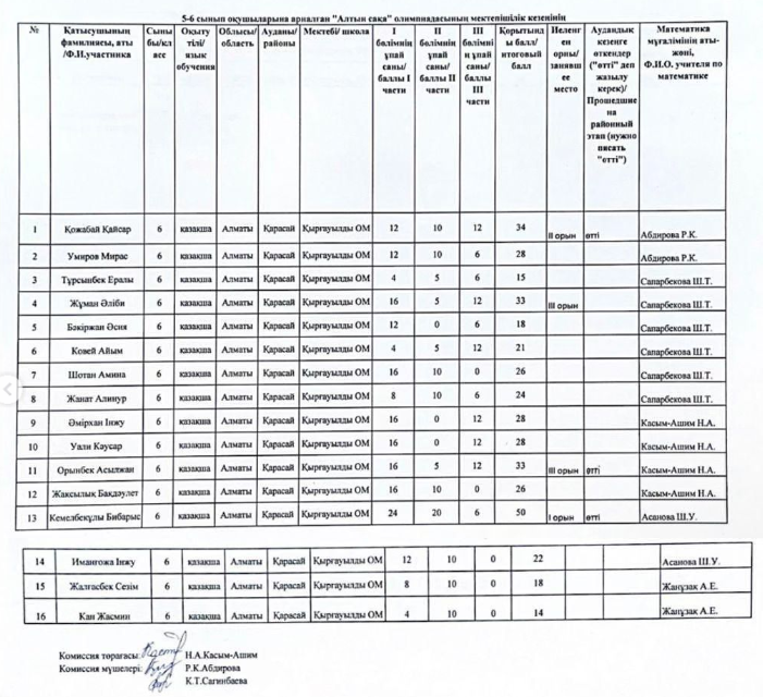 1 қазан 2024 күні Қырғауылды ауылындағы қазақ орта мектебінде Республикалық “Алтын сақа” математикалық олимпиадасының мектепішілік кезеңі өткізілді.
