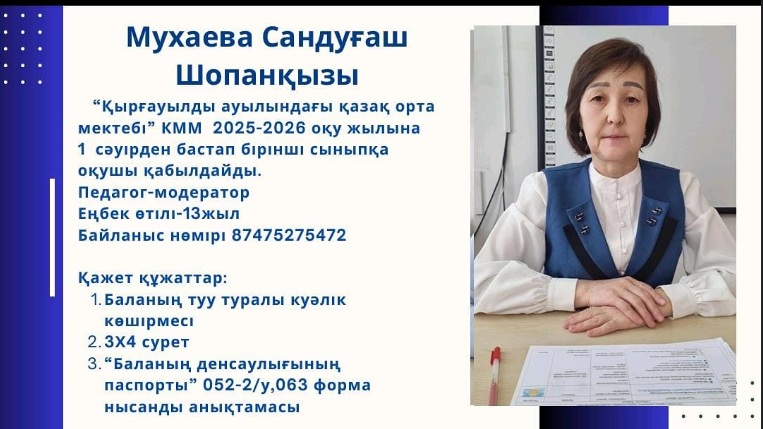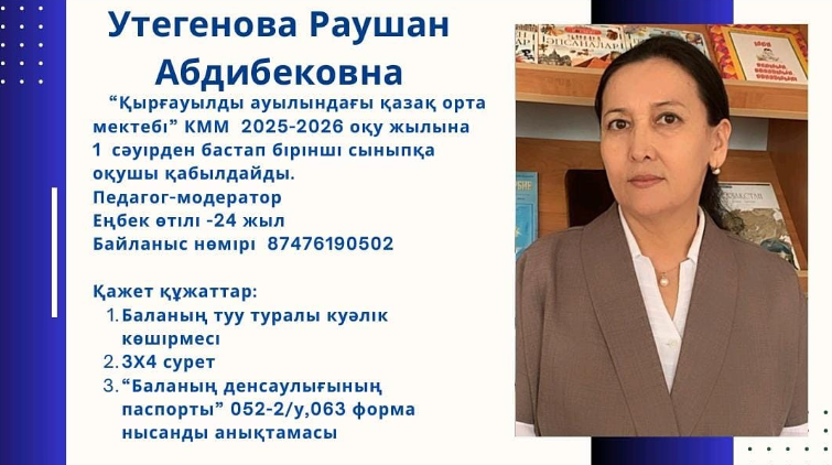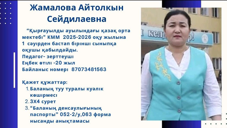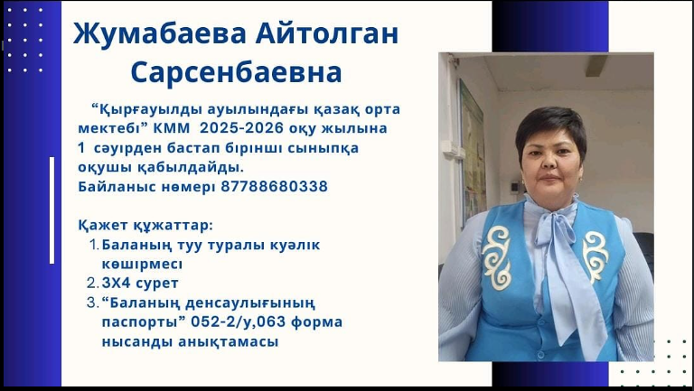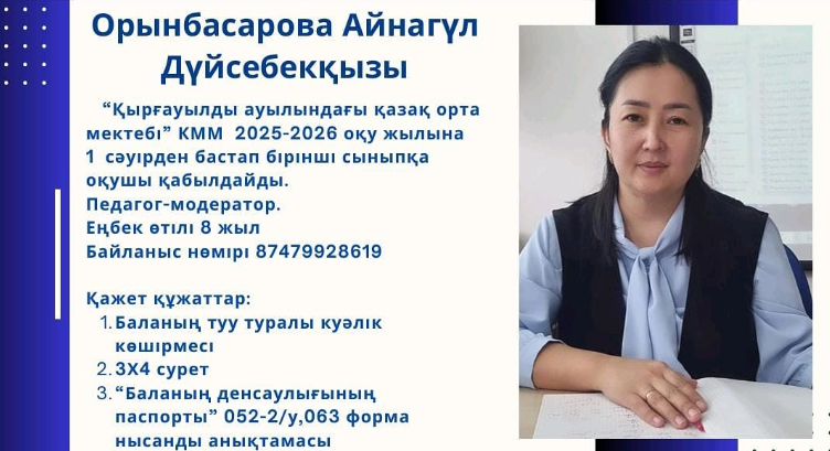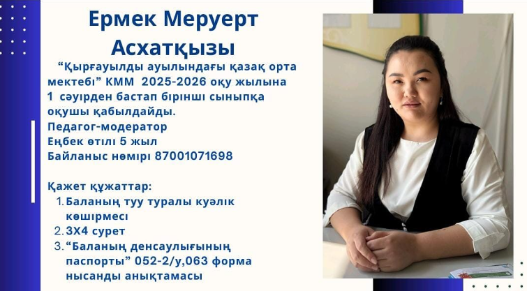 Ата - аналар назарына! 1 сәуірден бастап балаларды бірінші сыныпқа қабылдау үшін өтініштер қабылдайды! » "Қырғауылды ауылындағы қазақ орта мектебі"