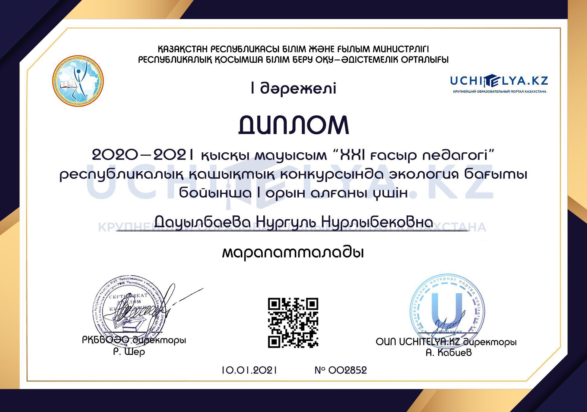 Дауылбаева Нургуль Нурлыбековна » "Қырғауылды ауылындағы қазақ орта мектебі"